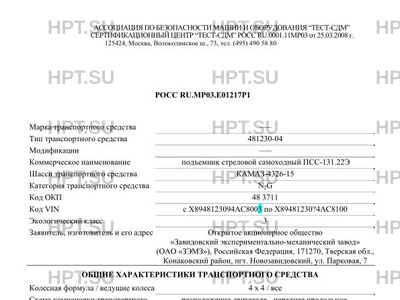 | Код VIN | с Х8948123094АС8003 по Х89481230?4АС8100 |