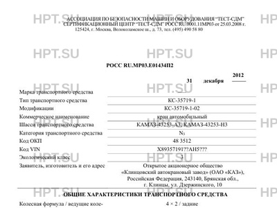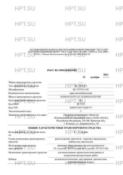 | Тип ТС | КС-35719-1 |