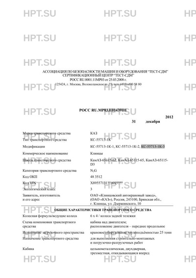 Модификации КС-55713-1К-1, КС-55713-1К-2, КС-55713-1К-3