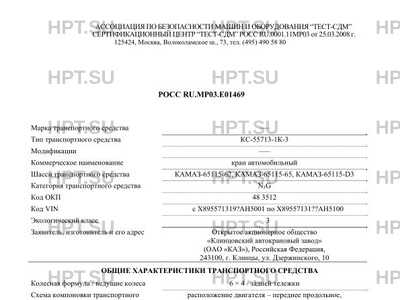 | Предприятие-изготовитель | ОАО "Клинцовский автокрановый завод", Россия, 243100, г. Клинцы, Брянской обл., ул. Дзержинского, 10 |