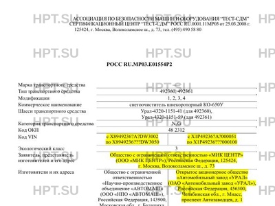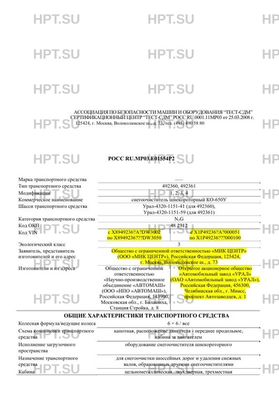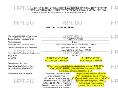 | Предприятие-изготовитель | Общество с ограниченной ответственностью "Научно-производственное объединение "АВТОМАШ" (ООО "НПО "АВТОМАШ"), Российская Федерация, 143900, Московская обл., г. Балашиха, Станция Стройка, д. 8.; Открытое акционерное общество "Автомобильный завод "УРАЛ" (ОАО "Автомобильный завод "УРАЛ"), Российская Федерация, 456300, Челябинская обл., г. Миасс, проспект Автозаводцев, д. 1 |