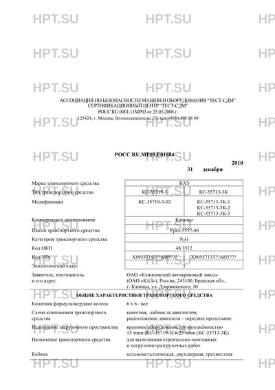 | Предприятие-изготовитель | ОАО "Клинцовский автокрановый завод" (ОАО "КАЗ"), Россия, 243100, Брянская обл., г. Клинцы, ул. Дзержинского, 10 |