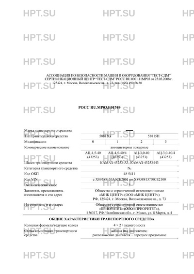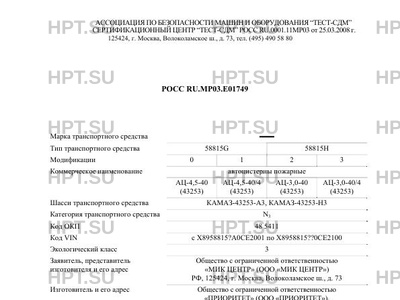 | Код VIN | с X8958815?A0СЕ2001 по X8958815??0СЕ2100 |