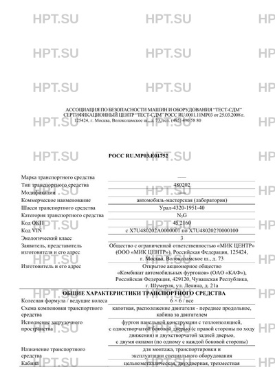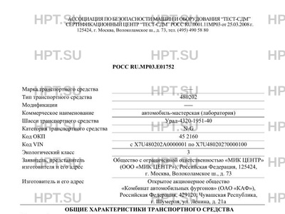 | Коммерческое наименование | автомобиль-мастерская (лаборатория) |