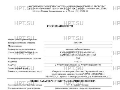 | Базовое ТС / Шасси | КАМАЗ-65115-62, КАМАЗ-65115-65, КАМАЗ-65115-D3, КАМАЗ-65115-N3 |