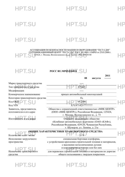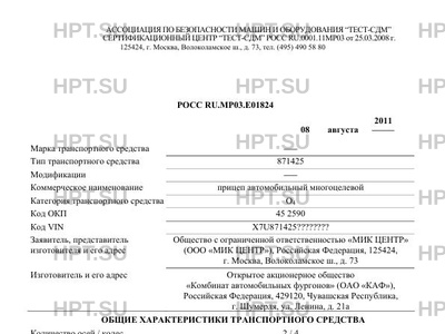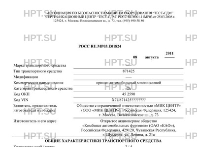 Предприятие-изготовитель Открытое акционерное общество "Комбинат автомобильных фургонов" (ОАО "КАФ"), Российская Федерация, 429120, Чувашская Республика, г. Шумерля, ул. Ленина, д. 21а