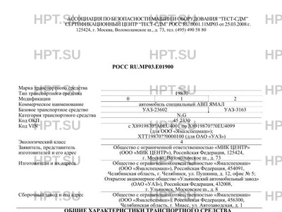 Код VIN с X8919870?А0EU4001 по X8919870??0EU4099 (для ООО "Ямалспецмаш"); XTT19870??000…