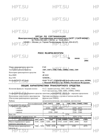 | Марка ТС | ГАЗ 3307, 33073, 3308, 33081, 330802, 33082, 3309 |
