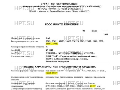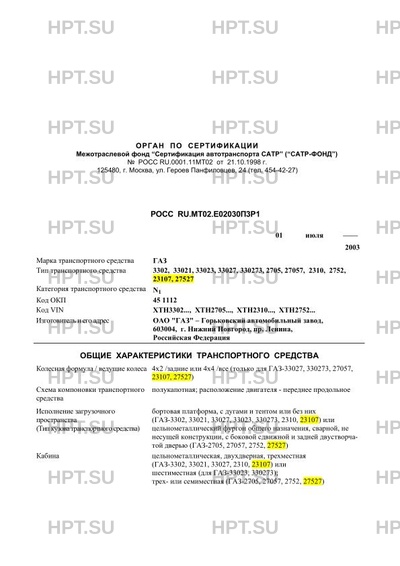 Тип ТС 3302, 33021, 33023, 33027, 330273, 2705, 27057, 2310, 2752, 23107, 27527