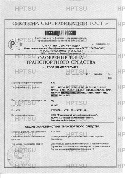| Тип ТС | 31512, 315126, 315127, 31514, 315146, 315147, 31512-10, 315126-10, 315127-10, 3… |