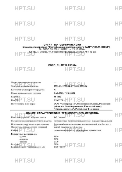 | Тип ТС | 2773-03, 2773-04, 2773-05, 2773-06 |