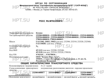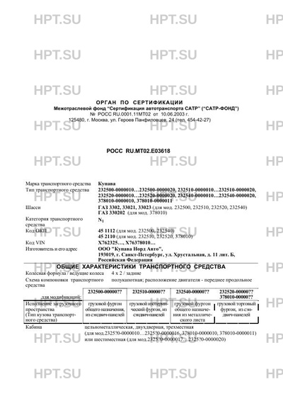| Тип ТС | 232500-0000010…232500-0000020, 232510-0000010…232510-0000020, 232520-0000010…232520-0000020, 232540-0000010…232540-0000020, 378010-0000010, 378010-0000011 |