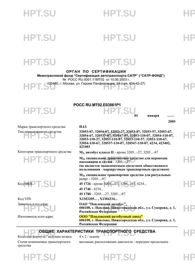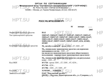 | Категория ТС | M3, автобус класса II - кроме 3205...-27, 3205...-87 M3, специальное транспортн… |