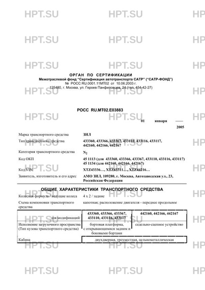 | Тип ТС | 433360, 433366, 433367, 433110, 433116, 433117, 442160, 442166, 442167 |