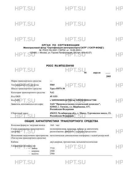 | Базовое ТС / Шасси | Урал-55571-30 |