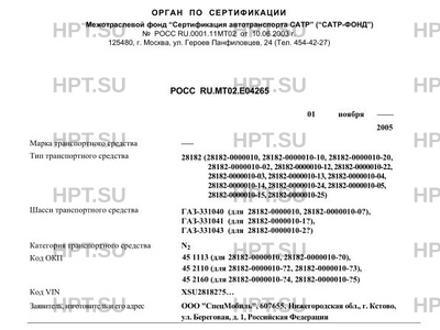 | Тип ТС | 28182 (28182-0000010, 28182-0000010-10, 28182-0000010-20, 28182-0000010-02, 28182-0000010-12, 28182-0000010-22, 28182-0000010-03, 28182-0000010-13, 28182-0000010-04, 28182-0000010-14, 28182-0000010-24, 28182-0000010-05, 28182-0000010-15, 28182-0000010-25) |