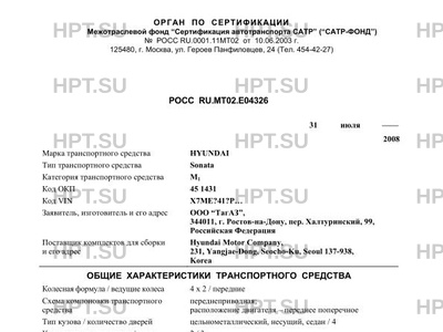 | Оборудование ТС | очиститель и омыватель ветрового стекла, электрические стеклоподъемники, кондиционер (хладагент R134A), противоугонное устройство HYUNDAI Sonata |