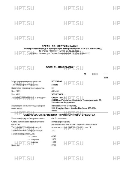 | Марка ТС | HYUNDAI |