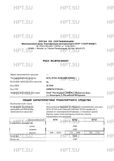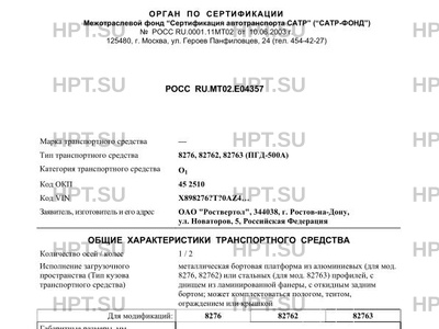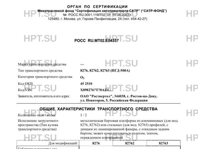 | Тип ТС | 8276, 82762, 82763 (ПГД-500А) |