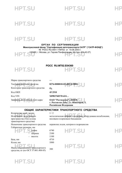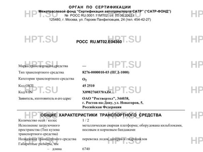 | Тип ТС | 8276-0000010-03 (ПГД-1000) |