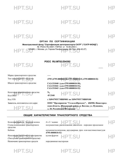 | Базовое ТС / Шасси | ГАЗ-331040 (для 4795-0000010-50), ГАЗ-331041 (для 4795-0000010-51), ГАЗ-331043 … |