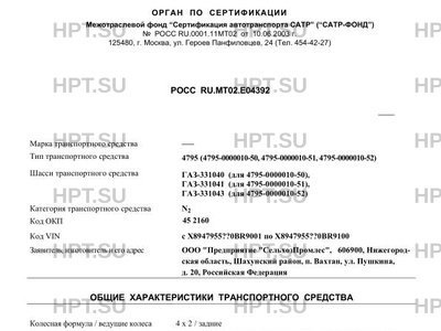 | Тип ТС | 4795 (4795-0000010-50, 4795-0000010-51, 4795-0000010-52) |