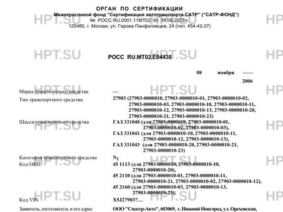| Тип ТС | 27903 (27903-0000010, 27903-0000010-01, 27903-0000010-02, 27903-0000010-03, 279… |