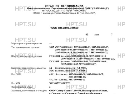 Тип ТС 3897 (3897-0000010-01, 3897-0000010-03, 3897-0000010-05, 3897-0000010-07, 3897-…
