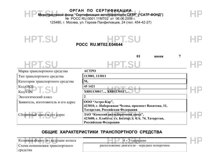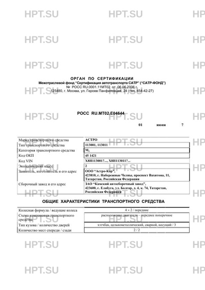 | Предприятие-изготовитель | ООО “Астро-Кар”, 423810, г. Набережные Челны, проспект Вахитова, 11, Татарстан, Российская Федерация; ЗАО “Камский автосборочный завод”, 423600, г. Елабуга, ул. Болгар, д. 4, к. 74, Татарстан, Российская Федерация |