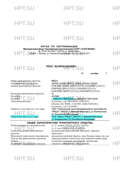| Сборочный завод | ЗАО "Завод "РИДА", 603127, г. Нижний Новгород, ул. Коновалова, 21, Российская Федерация |