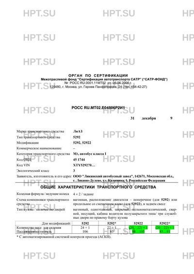| Тип ТС | 5292 |