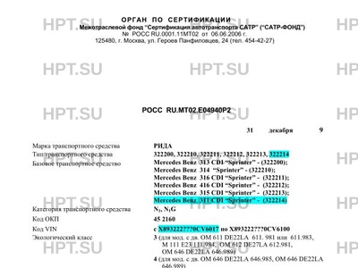 Базовое ТС / Шасси Mercedes Benz 313 CDI "Sprinter" - (322200); Mercedes Benz 314 "Sprinter" - (32…