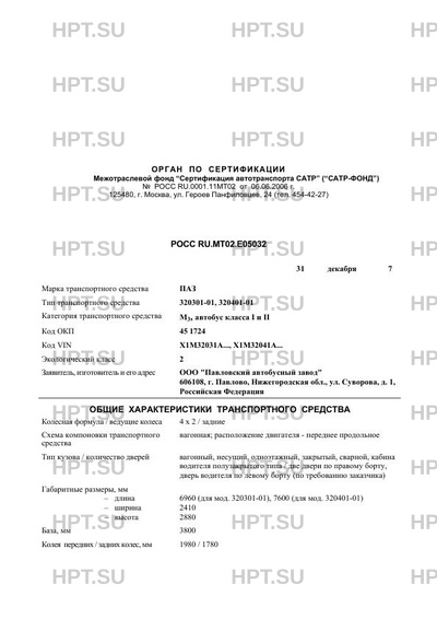| Тип ТС | 320301-01, 320401-01 |