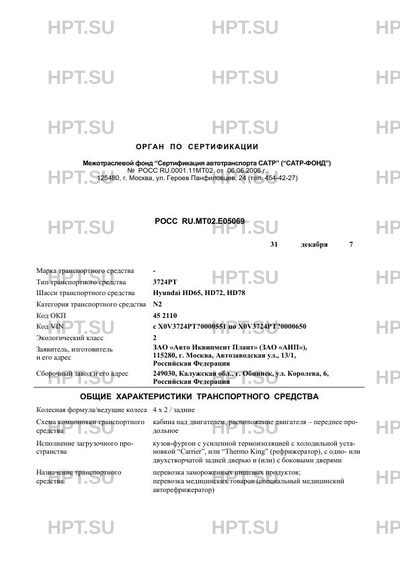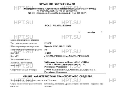 | Базовое ТС / Шасси | Hyundai HD65, HD72, HD78 |