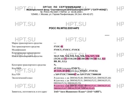 | Назначение | (для специализированных транспортных средств) перевозка скоропортящихся товаров (мод. 5715СТ) |