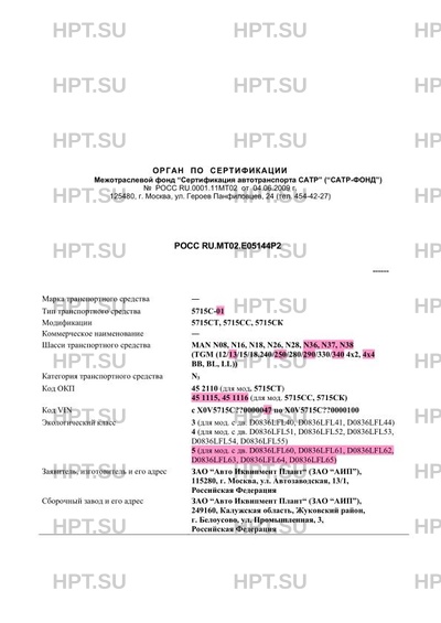 | Код VIN | с X0V5715C??0000047 по X0V5715C??0000100 |