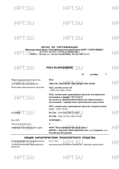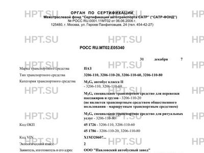 | Категория ТС | M3G, автобус класса II - 3206-110, 3206-110-60 M3G, специальное транспортное ср… |