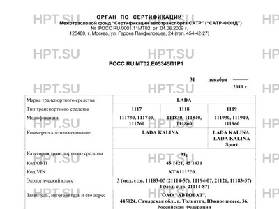 | Предприятие-изготовитель | ОАО "АВТОВАЗ", 445024, Самарская обл., г. Тольятти, Южное шоссе, 36, Российская Федерация |