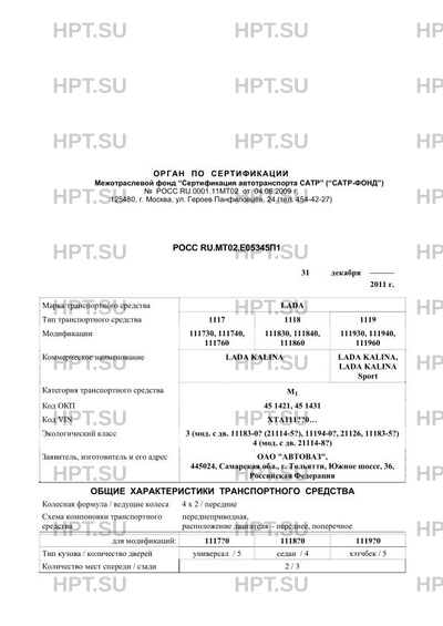 Коммерческое наименование LADA KALINA LADA KALINA, LADA KALINA Sport