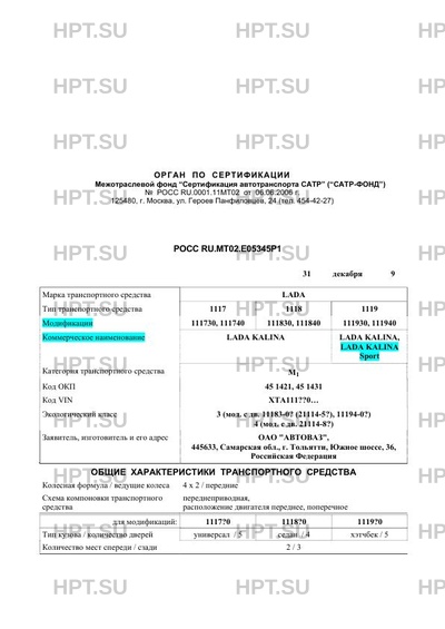 | Коммерческое наименование | LADA KALINA LADA KALINA, LADA KALINA Sport |