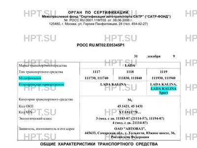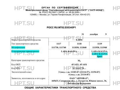 | Тип ТС | 1117 1118 1119 |