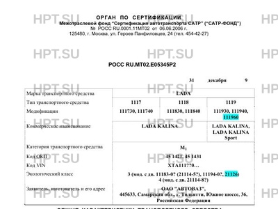 | Экологический класс | 3 (мод. с дв. 11183-0? (21114-5?), 11194-0?, 21126) 4 (мод. с дв. 21114-8?) |