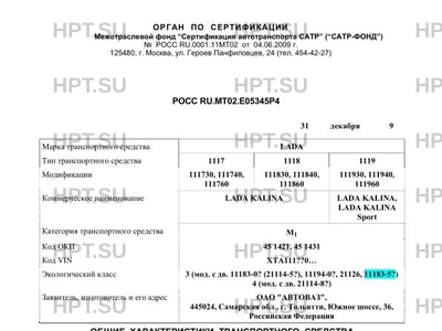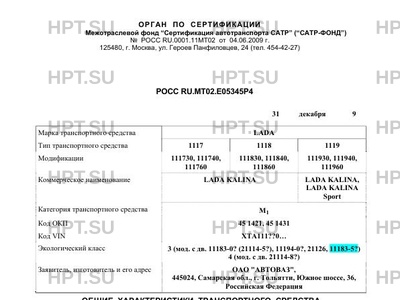 Экологический класс 3 (мод. с дв. 11183-0? (21114-5?), 11194-0?, 21126, 11183-5?) 4 (мод. с дв. 211…