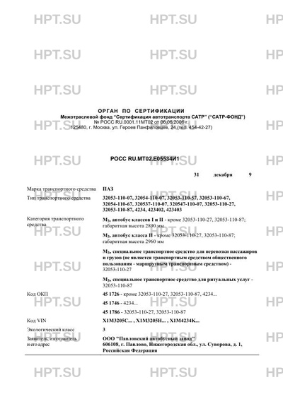 Категория ТС M3, автобус классов I и II - кроме 32053-110-27, 32053-110-87