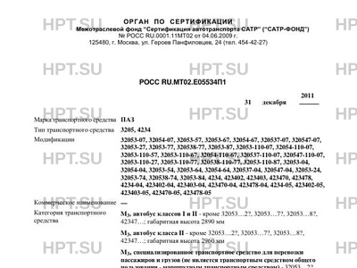 | Оборудование ТС | для мод. 32053…7?, 42347… - детские сиденья с ремнями безопасности, места для размещения ручной клади и багажа, убирающаяся ступенька у каждой служебной двери, знаки "Перевозка детей" и надписи "ДЕТИ", устройство ограничения скорости, внутреннее и внешнее громкоговорящее устройство, устройство, автоматически подающее звуковой сигнал при движении задним ходом, внешние зеркала с электрообогревом ПАЗ 3205, 4234 |