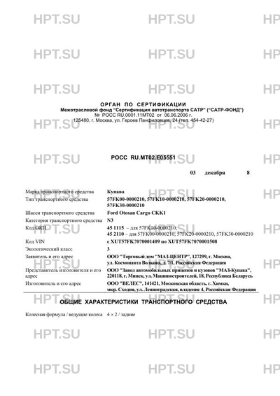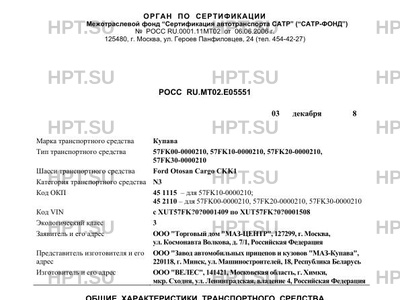 | Тип ТС | 57FK00-0000210, 57FK10-0000210, 57FK20-0000210, 57FK30-0000210 |