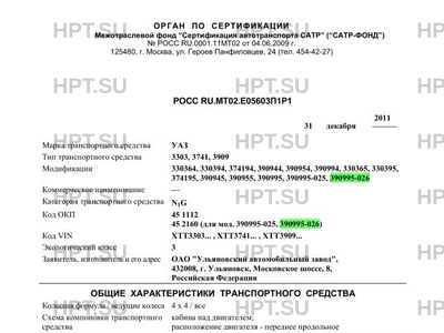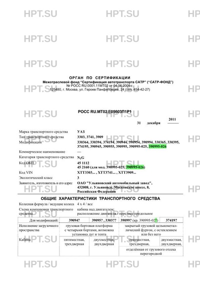 | Тип ТС | 3303, 3741, 3909 |