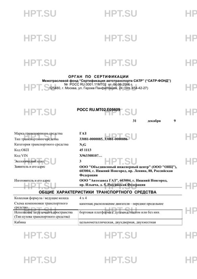 | Тип ТС | 33081-0000085, 33081-0000086 |