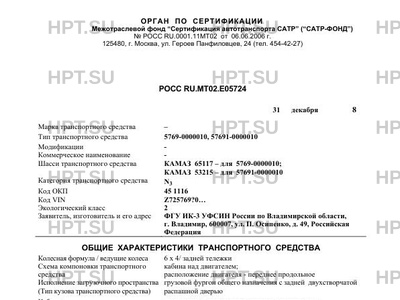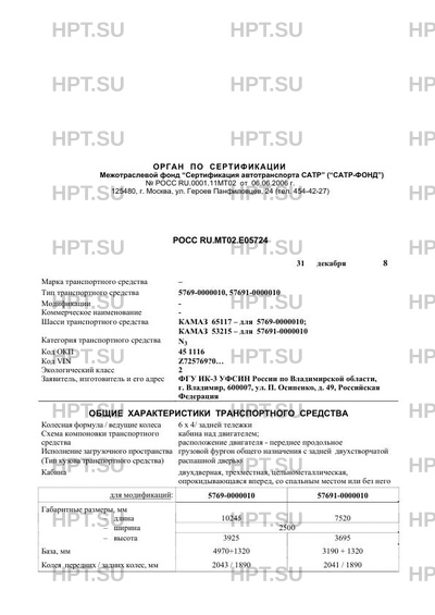 | Базовое ТС / Шасси | КАМАЗ 65117 - для 5769-0000010; КАМАЗ 53215 - для 57691-0000010 |