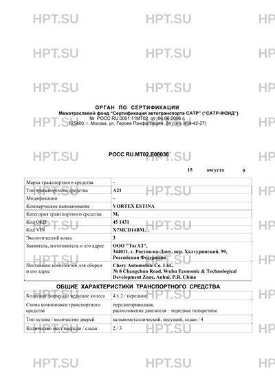 | Тип ТС | A21 VORTEX ESTINA |